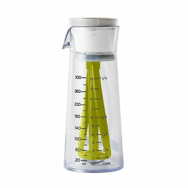 The Chef’n Emulstirβ’ Salad Dressing Mixer allows you to emulsify like never before. Fill the BPA-free salad dressing container vessel with your favorite dressing ingredients, press in the cork fit lid, pump the plunger and watch in awe as it comes to life. When you are ready to serve, twist the cork to open and pour. For a nice finishing touch, we designed a dripless spout to eliminate the oily trace of salad dressing. Chef’n is a select range of simple yet elegant and extremely functional kitchen tools. Spend less time prepping and more time enjoying with the cutting edge.