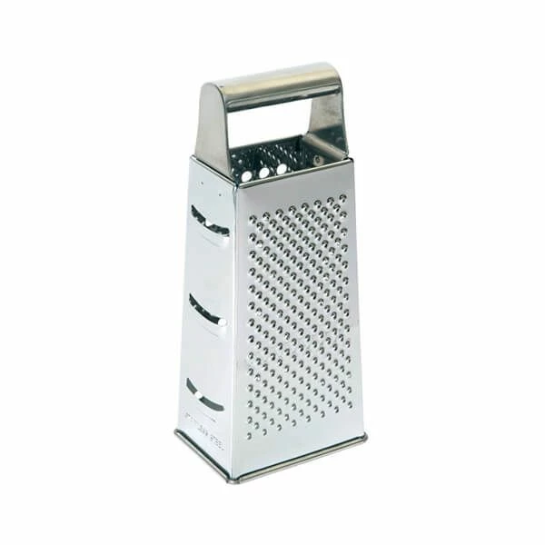 This stainless steel grater includes 4 grating and slicing surfaces for a variety of cheese, vegetables and chocolate. The grater includes a brushed stainless steel handle for a firm and comfortable grip. Dishwasher safe for easy and convenient cleaning. Dimensions: 9 x 6 x 21cm.