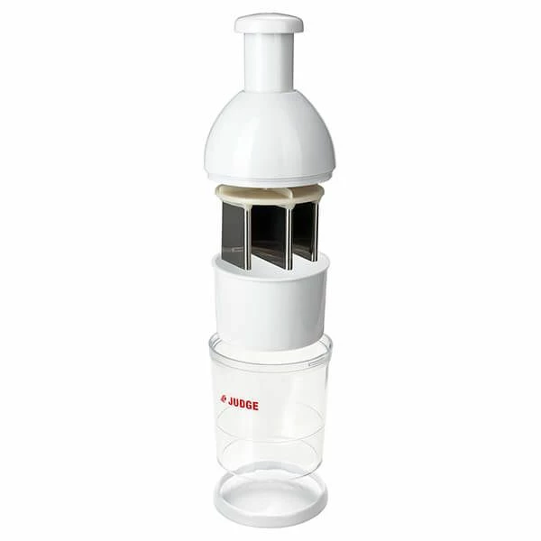The Judge Vegetable Chopper measures 22cm high x 10cm wide x 10cm long.