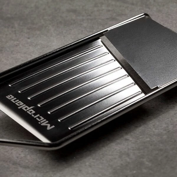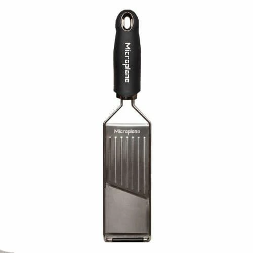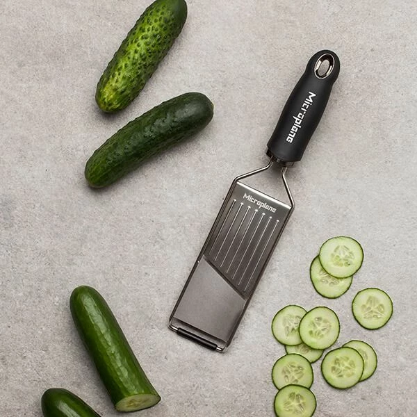 The Microplane Gourmet Series Slicer slices various foods with speed, ease and convenience into 2mm widths and is ideal for cucumbers, radishes, courgette, potatoes, onions, apples and other ingredients.