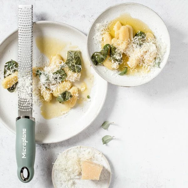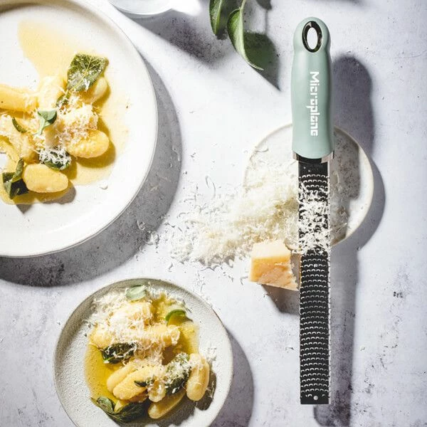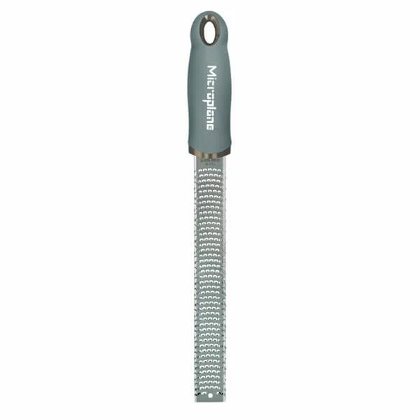 This Microplane Premium Classic Series Zester/Grater in Eucalyptus Green has a photo-etched stainless steel blade for ultra sharp and long lasting performance when zesting citrus fruits.