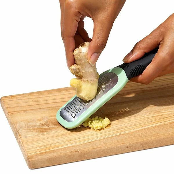 This ginger & garlic grater by OXO Good Grips also comes with a convenient, snap-on cover to protect the grating surface and your hands. The cover also doubles as a scraper to get every last bit of paste off the grater and into your recipe.