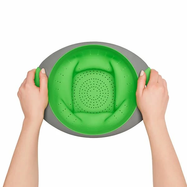 The OXO Good Grips Collapsible 3.3L Colander is made from heat-resistant silicone allowing it be collapsed flat for compact storage.