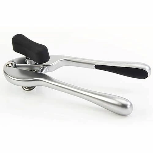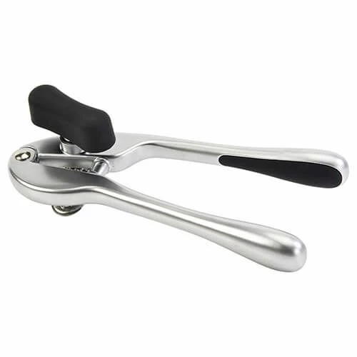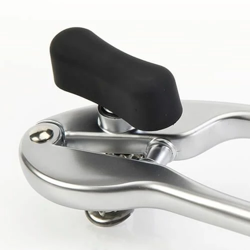 The can opener features a rigid self-aligning mechanism and classic ‘inside the rim’ cutting wheel.