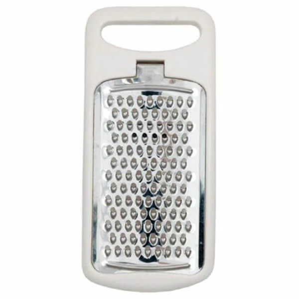 The grater is surrounded by a white plastic trim and features a collecting tray for the gratings, saving mess and time.